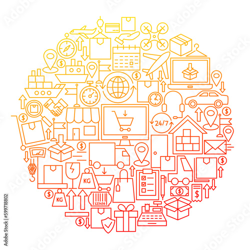 Mirror shape poster banner template. Bedroom interior with furniture vector thin line art flat style design elements, icons for web banners and printed materials.