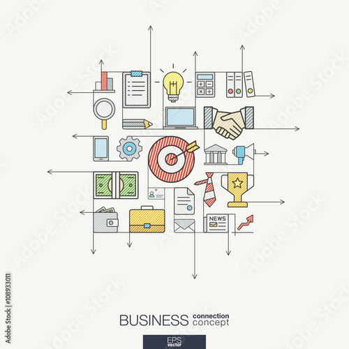 Business poster banner template. Business vector thin line art flat style design elements, icons for web banners and printed materials.