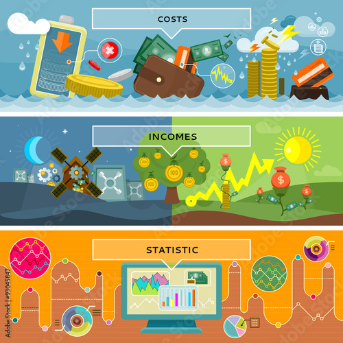 Car service vector web banner template set. Auto repair and maintenance thin line art flat style design elements, icons, copy space.