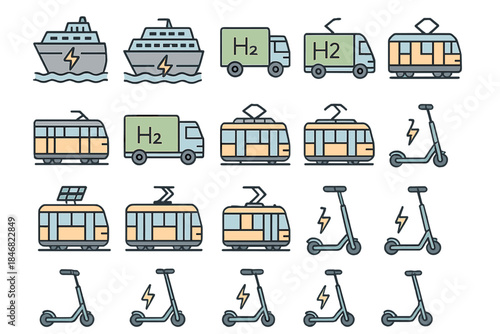 Ecological factory and alternative energy icon set. Vector thin line art flat style design elements isolated on white background.