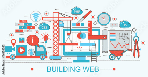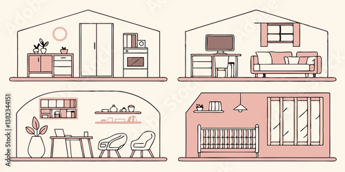 Hotel poster banner template. Vector thin line art flat style design elements, icons for web banners and printed materials.