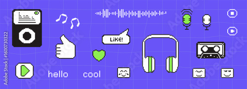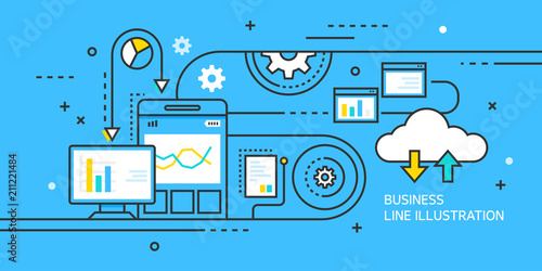 Housing vector web banner template set. House interior with furniture, garage, auto, bike thin line art flat style design elements, icons, copy space.