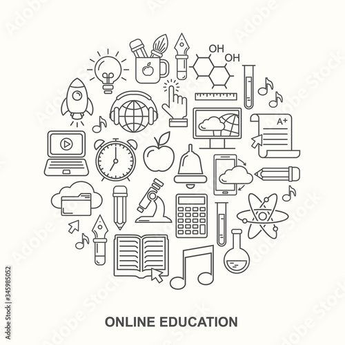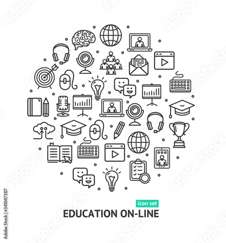 Human brain shape poster banner template with brain training, brainstorming, innovation, creative thinking vector thin line art flat style design elements, icons for website banner, printed materials.