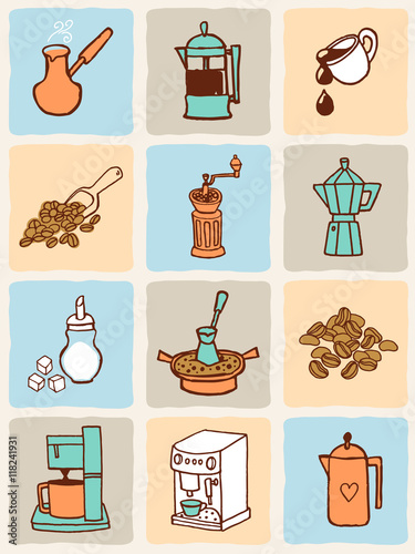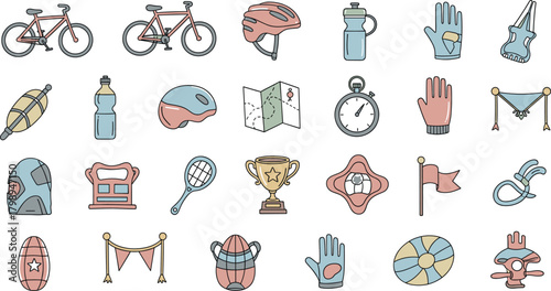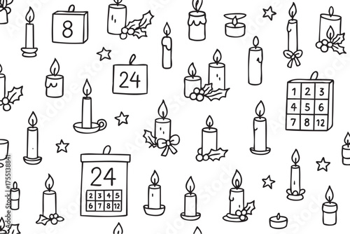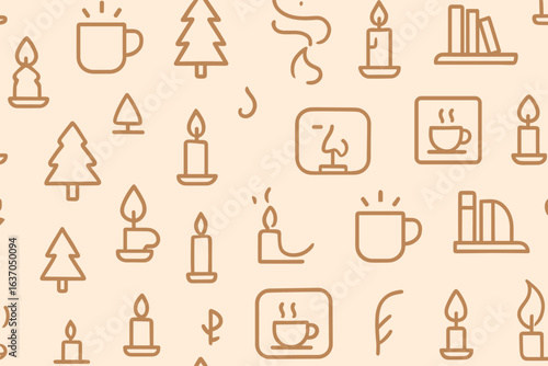Vector seamless pattern with hunting duck, deer, hare equipment and accessories. Thin line art flat style design hunter background, wallpaper.