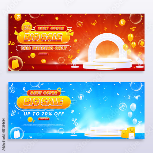 Hunter vector web banner template set. Hunting duck, deer, hare equipment and accessories thin line art flat style design icons.