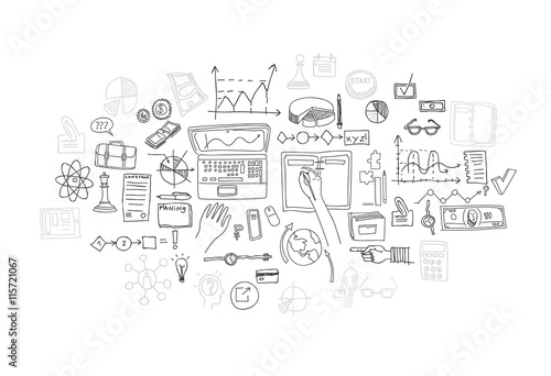 Information technology poster banner template in the shape of puzzle. Vector thin line art flat style programming design elements, icons for website banners and printed materials.