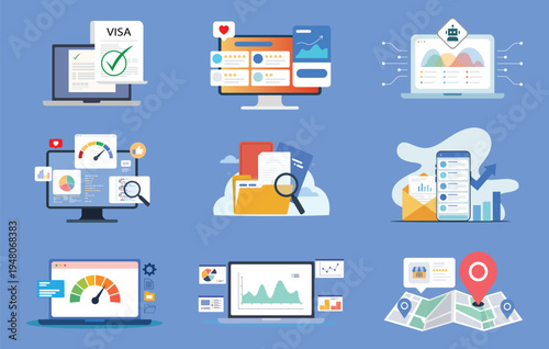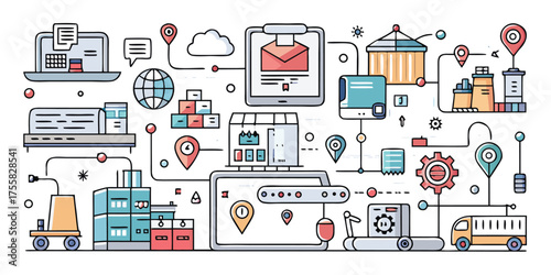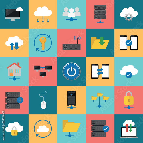 Vector seamless pattern with programming, computer science symbols, design elements. Thin line art flat style design information technology background, wallpaper.