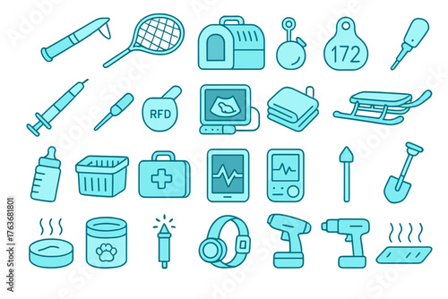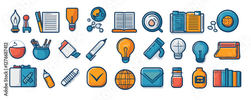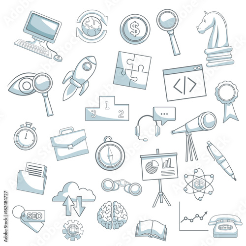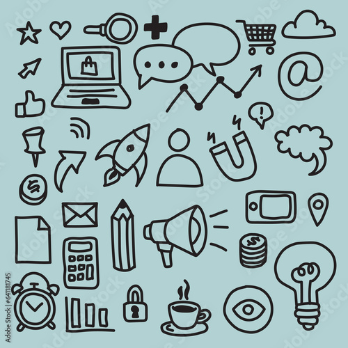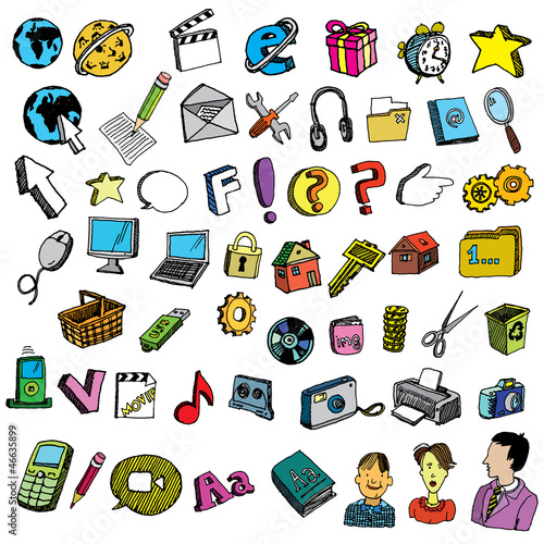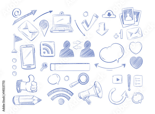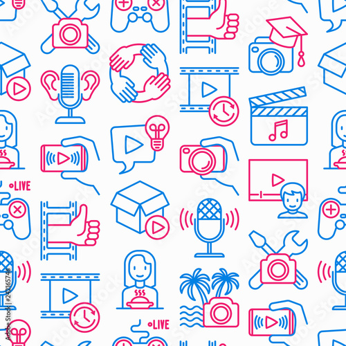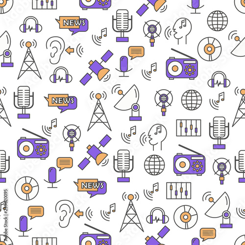 Vector seamless pattern with radio, internet, mobile, social media symbols, design elements. Thin line art flat style design mass media background, wallpaper.