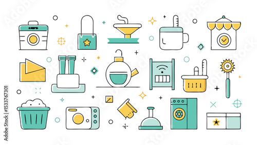 Vector seamless pattern with pirate hat ship treasure chest flag rum barrel spyglass, skull and bones, map parrot, steering wheel, hook etc. Thin line art flat style design pirate background wallpaper