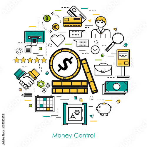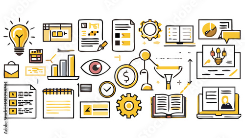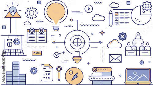 Vector seamless pattern with business vision, strategy, creative idea, inspiration concept symbols. Thin line art flat style design business planning background, wallpaper.