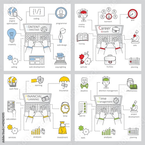 Rap music advertising vector poster banner template. Hip hop music singer with accessories chain glasses watch cap retro car loudspeakers mic etc. Thin line art flat icons for web, printed materials.