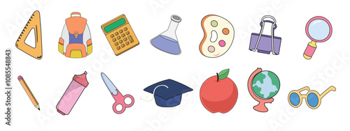 Vector seamless pattern with space items rocket, planets, spaceship, telescope, astronaut, alien, constellation etc. Thin line art flat style design cosmos background, wallpaper.