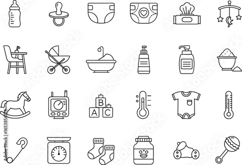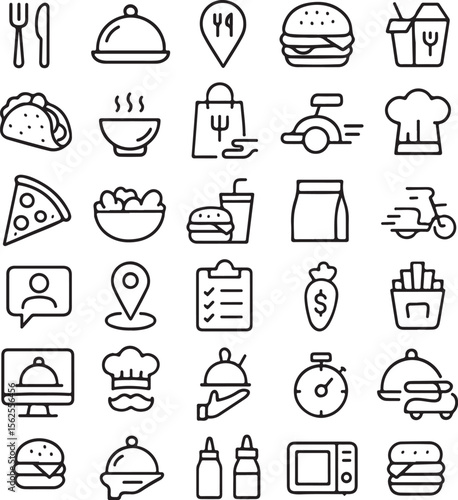 Food and cooking utensils icon set. Vector thin line art flat style design elements isolated on white background.