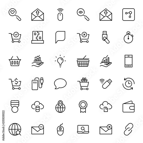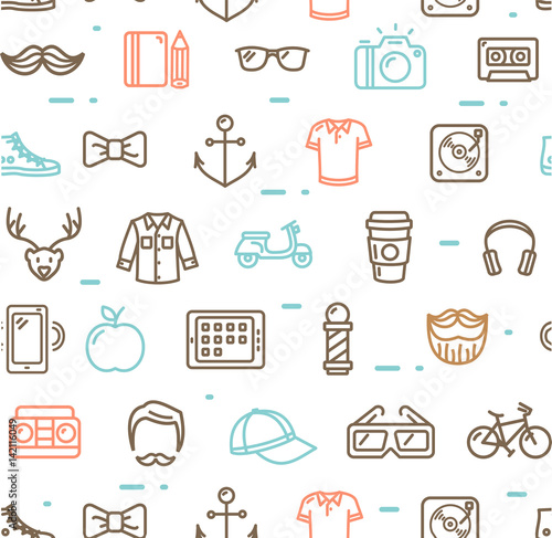 Vector seamless pattern with business team icons. Thin line art flat style design background, wallpaper.