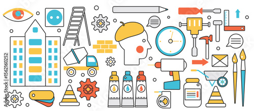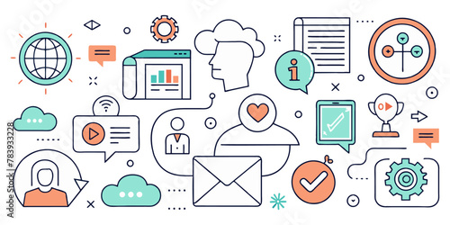 Vector seamless pattern with video and cinema production symbols. Thin line art flat style design video background, wallpaper.