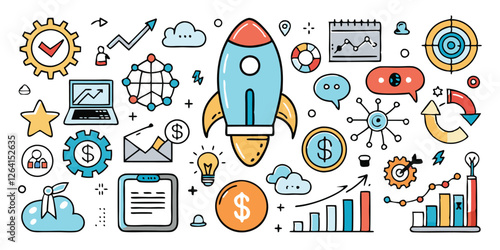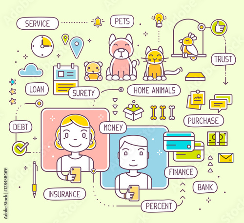 Brainstorm poster banner template. Vector thin line art flat style design with office workers funny cartoon characters, business symbols, icons for website banners and printed materials.