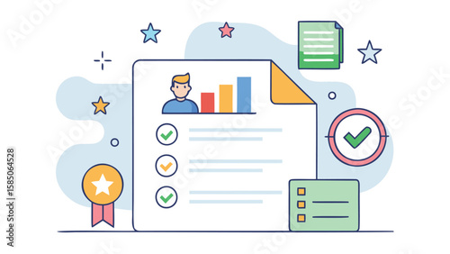 Business dashboard poster banner template. Vector thin line art flat style design with office workers funny cartoon characters, business symbols, icons for website banners and printed materials.