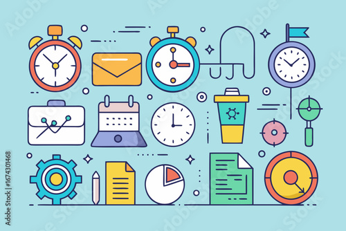 Vector set of Success and Management concept banners. Linear chart, graph, schemes. Thin line flat design infographic elements, symbols and icons for web, marketing, printing.