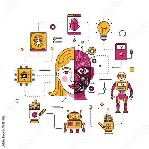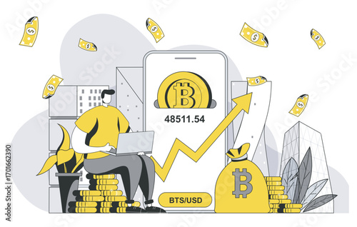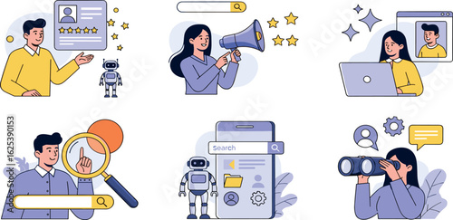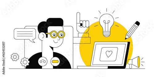Vector web development, programming concept banner. Digital devices, programmer creating website, writing computer software, mobile applications. Thin line flat design symbols and icons for web, print