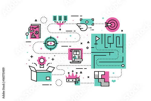 Speech bubble shaped poster banner template. Radio, internet, mobile, social media vector thin line art flat style design elements, icons for website banners and printed materials.