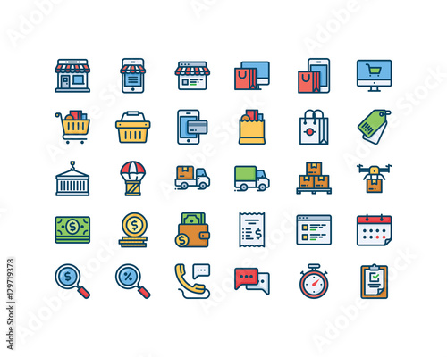 Vector seamless pattern with online shopping, e-commerce, mobile payment symbols, design elements. Thin line art flat style design mobile banking background, wallpaper.