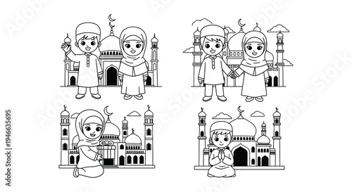 Padlock security symbol shape poster banner template. Data protection, computer security vector thin line art flat style design elements, icons for website banners and printed materials.