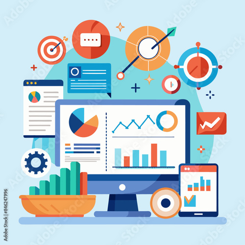 Business success poster banner template. Vector thin line art flat style design with office workers funny cartoon characters, business symbols, icons for website banners and printed materials.