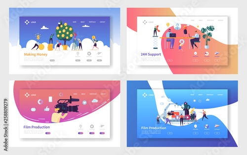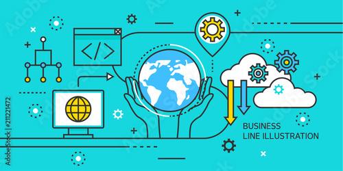 Travel agency or tourism website development template set. Vector modern thin line art flat style design elements with travel symbols, icons for website banners and printed materials.