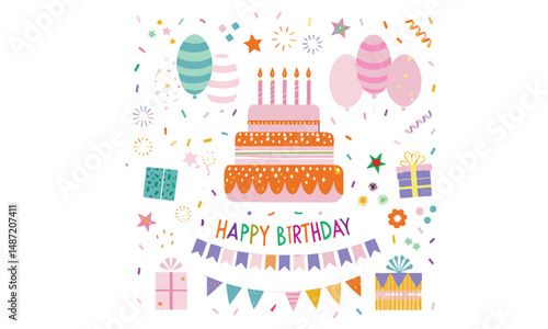 Women day advertising poster banner template. Holiday cake, flowers, gifts, champagne, balloons etc. Vector thin line art flat style design elements, icons for website banners and printed materials.