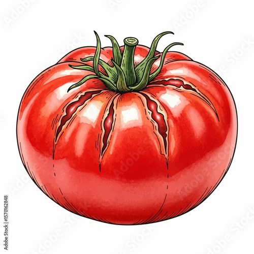 Vector tomato. Isolated red cherry icon. Vegetable food on white background. Beverage drink, salad or smoothie ripe ingredient