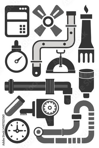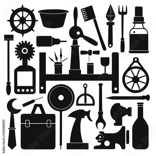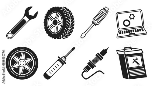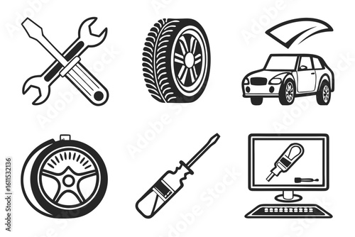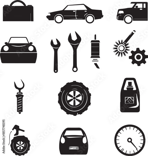 Vector set of vintage car service symbols, icons isolated on white background. Black templates for logos and print.