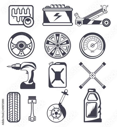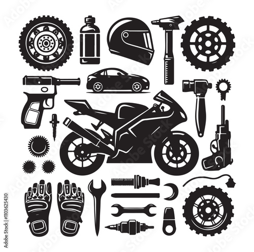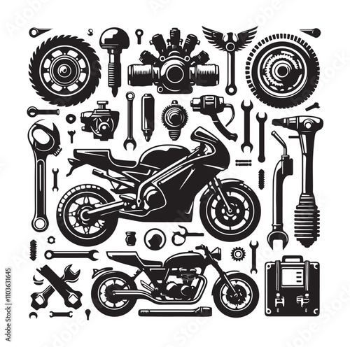 Vector set of vintage motorcycle symbols, icons isolated on white background. Black templates for logos and print.