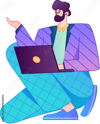 Vector illustration of businesswoman making use of tablet, speech bubble in retro pop art comic style.