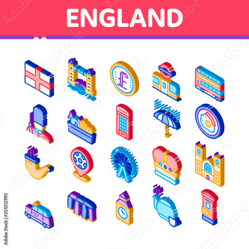 Water park vector colored icon set with different types of slides, swimming pools, ferris wheel, whirlpool bath, fountain. Aqua park isometric flat style design elements.