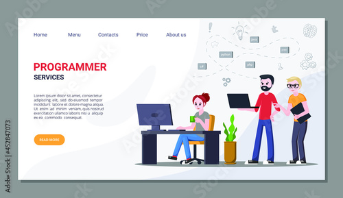 Vector web site design template. Business meeting and presentation. Training course with tutor. Landing page concepts for website and mobile development. Modern flat illustration