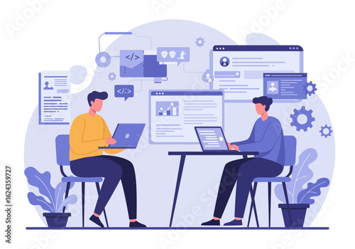 Vector web site design template. Dashboard widgets, report metrics and analytics. Landing page concepts for website mobile development. Modern flat illustration.