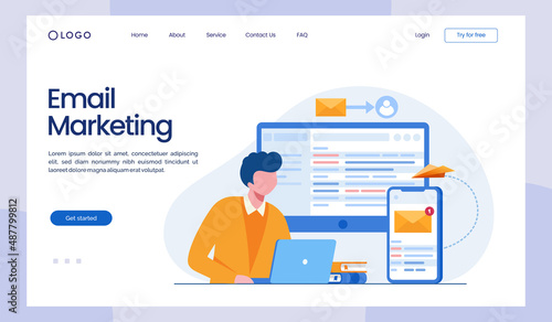 Vector web site design template. Online messaging and email app. Landing page concepts for website mobile development. Modern flat illustration.