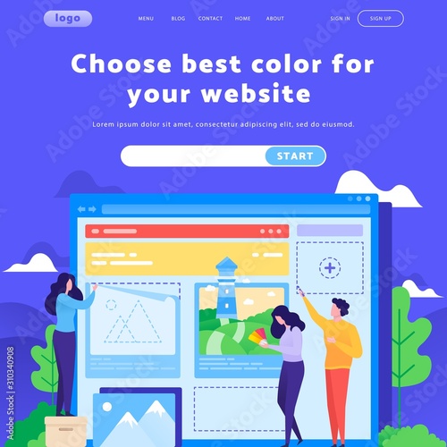 Vector web site design template. Social media and photo sharing application, email notification. Landing page concepts for website mobile development. Modern flat illustration.