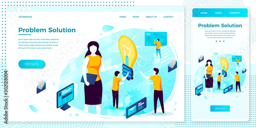 Vector web site design template. Startup business growth, rocket launch, partnership deal, desicion. Landing page concepts for website and mobile development. Modern flat illustration.