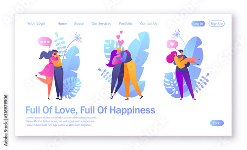 Vector web site gradient design template. Happy family walking in the rain in park. Fall season day. Landing page concepts for website and mobile development. Modern flat illustration