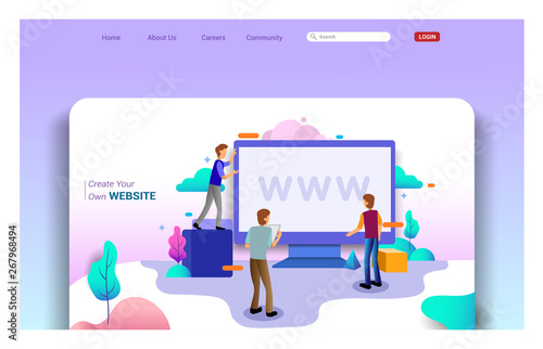 Vector web site gradient design template. Motorbike fast city delivery service. Post mail service. Landing page concepts for website and mobile development. Modern flat illustration