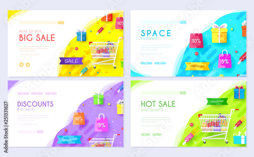 Vector web site linear art design template. School bus and lunch break. School backpack. Landing page concepts for website and mobile development. Modern flat illustration