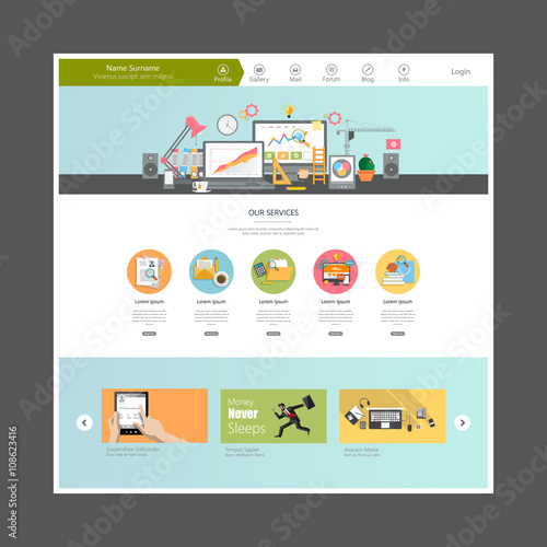 Vector web site linear art design template. Satellite global telecommunication system. Landing page concepts for website and mobile development.