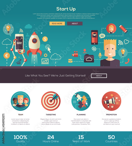 Vector web site linear art design template. Digital marketing and seo analytics. Content marketing, market research. Landing page concepts for website and mobile development