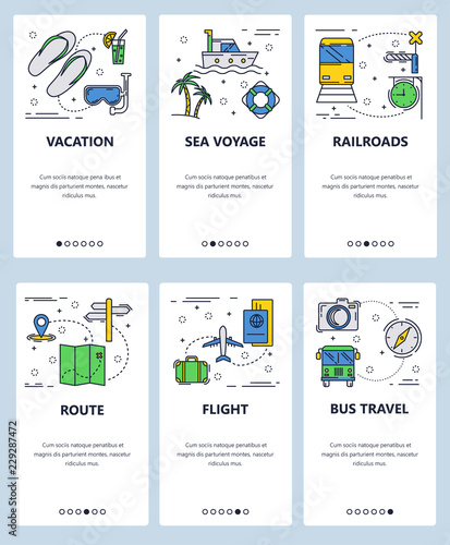 Vector web site linear art onboarding screens template. Ecology and recycle concept. Bio fuel and biodegradable plastic. Menu banners for website and mobile app development.