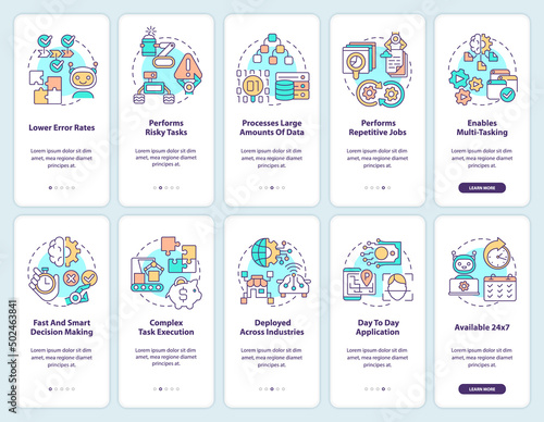 Vector web site linear art onboarding screens template. Education, reading books and getting new knowledge. Learning and brain training. Menu banners for website and mobile app development