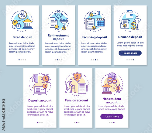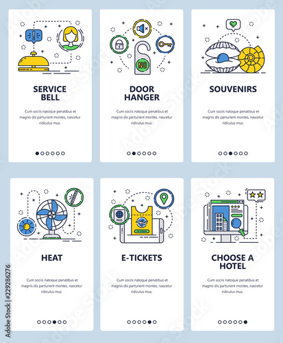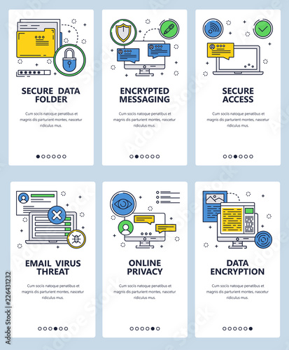 Vector web site linear art onboarding screens template. Cryptocurency and fintech innovation. Future of money. Menu banners for website and mobile app development. Modern design flat illustration