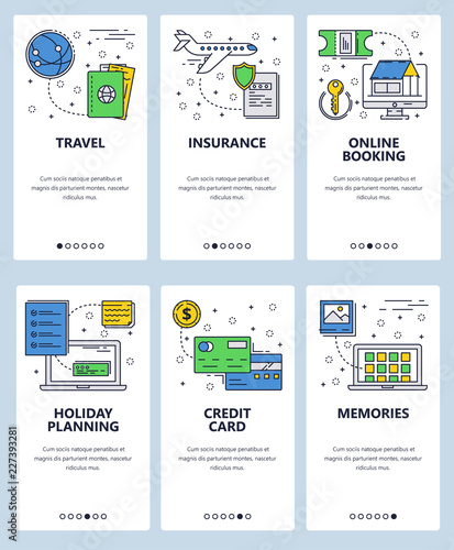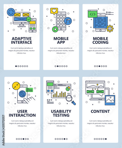 Vector web site linear art onboarding screens template. Media, inventions and inspiration ideas icons. Menu banners for website and mobile app development. Modern design flat illustration