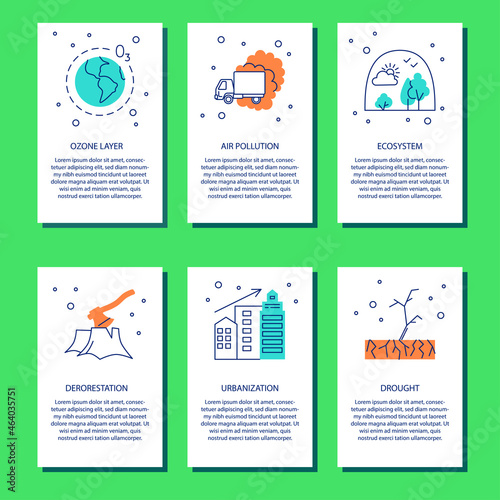 Vector web site linear art onboarding screens template. Renewable energy sources and power plants. Menu banners for website and mobile app development. Modern design flat illustration.