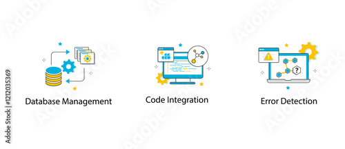 Vector web site linear art onboarding screens template. Social media network, surfing internet and computer data backup. Menu banners for website and mobile app development.